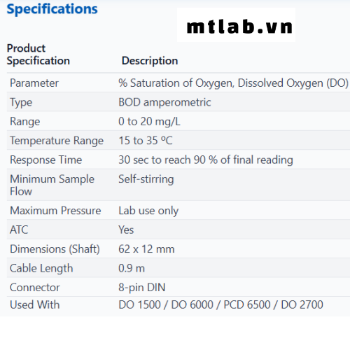- Đầu đo oxy hòa tan có cánh khuấy EC620SSP Eutech là loại điện cực DO Polarographic (BOD amperometric), cơ chế tự khuấy (không cần dòng chảy bên ngoài), dải đo 0-20 mg/L, nhiệt độ giới hạn 15-35°C
