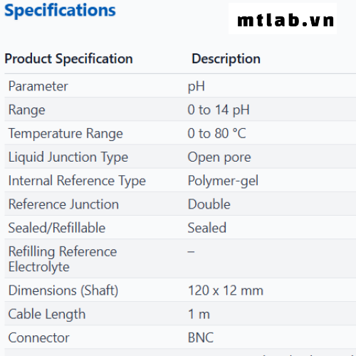 - Tương thích phổ biến: Hoạt động với mọi máy đo pH có đầu nối BNC.