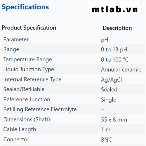 • Đầu dò pH ECFG6351101B Eutech thân thủy tinh chuyên dụng cho mẫu rắn/bán rắn (dải 0-13 pH, 0-100°C, mối nối gốm dạng vòng, tham chiếu Ag/AgCl, đầu BNC)