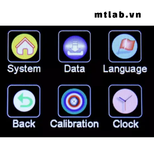 - Màn hình cảm ứng màu hiển thị giá trị đo, thống kê và trạng thái hiệu chuẩn
