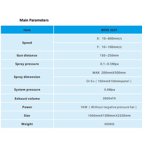 Thông số kỹ thuật Trạm phun sơn tấm mẫu tự động BEVS3231:
